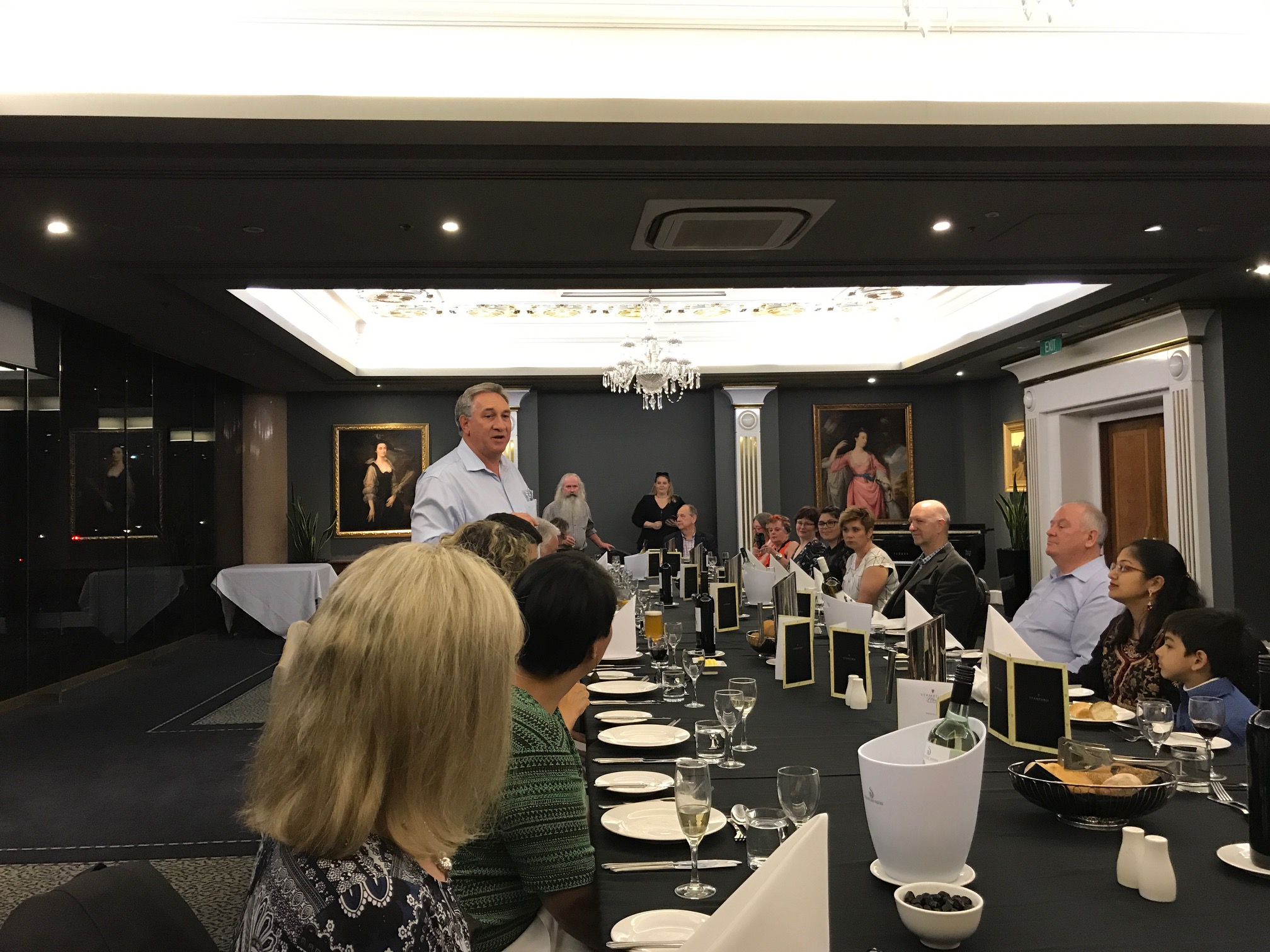 写真:上から 歓迎晩餐会で挨拶するGreg Saymour AOA会長